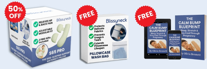 Our eBook: "The Calm Bump Blueprint: Sleep, Stretch & Stay Cool Through Pregnancy" is FREE with every order on Blissyneck. Receive it by email after placing your order!