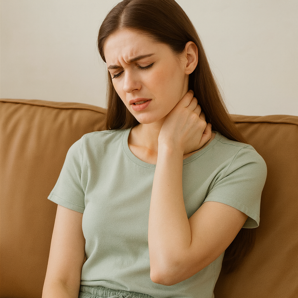 While you “push through”, tension builds deep in the cervical curve. Surface massage helps for minutes… then the pain is back.